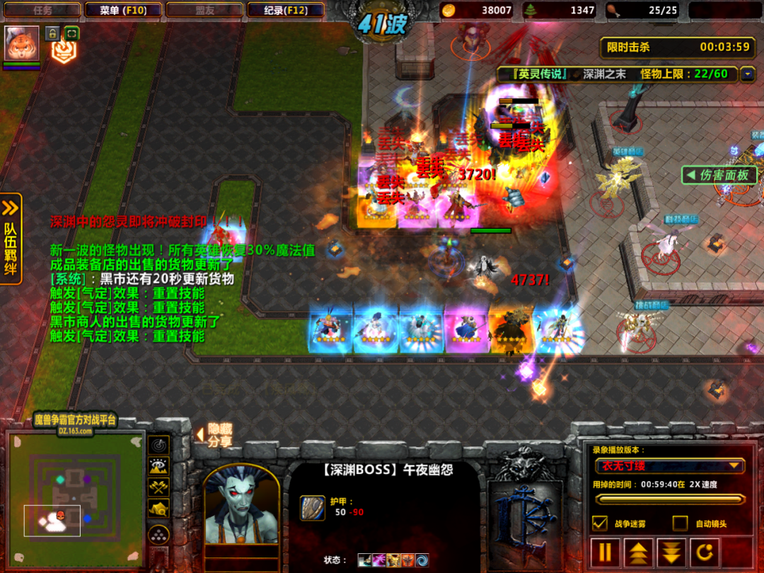 这套阵容有着我们之前介绍的庞统作为控制,也有着孙悟空协助眩晕,再加上各种宝物的控制,37波的内圈BOSS午夜幽魂硬是没有动几下。
