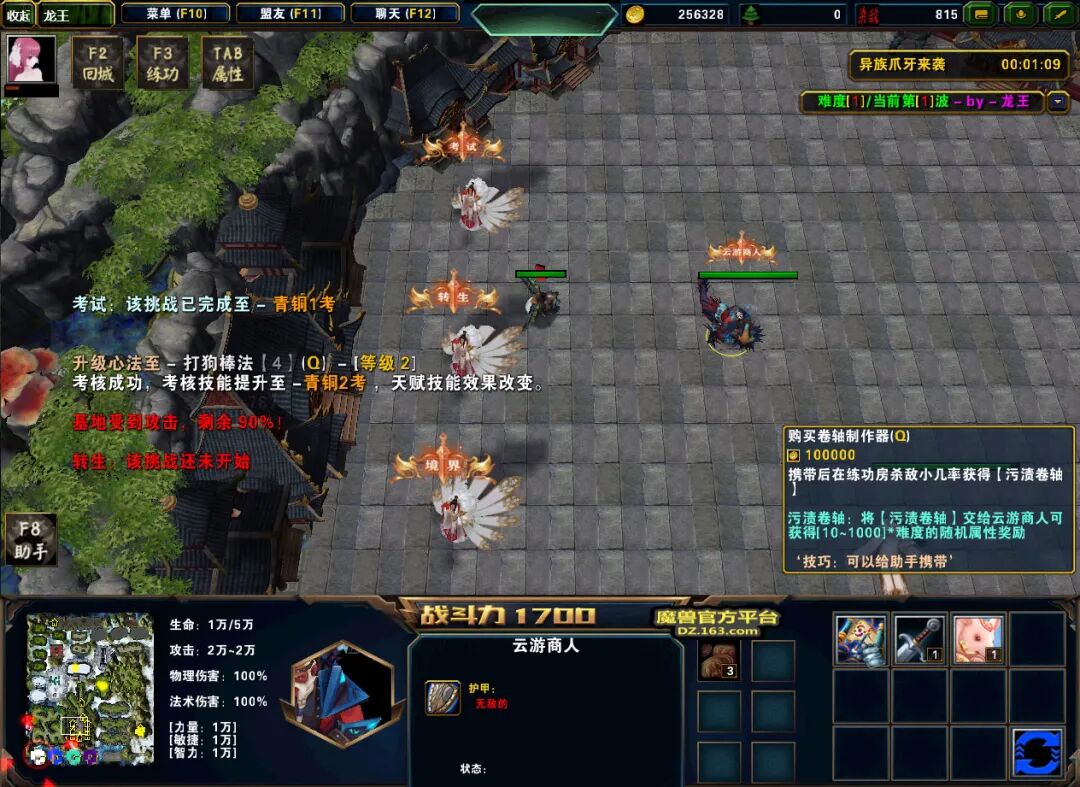 不过图腾的修炼比较消耗资源,再此之前我们最好先到云游商人这里购买一本卷轴制作器和一把无名残剑,携带着它们就可以在练功房杀敌和击杀进攻怪时获得额外奖励。
