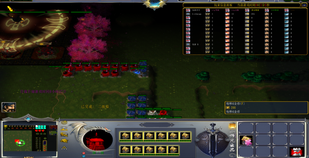 同时你也可以考虑,在你真正的大本营之外,建造一个“烟雾弹”。如小鸡下图的布置。即我在金矿区的下方,建造了足以迷惑猎杀者的阵型。