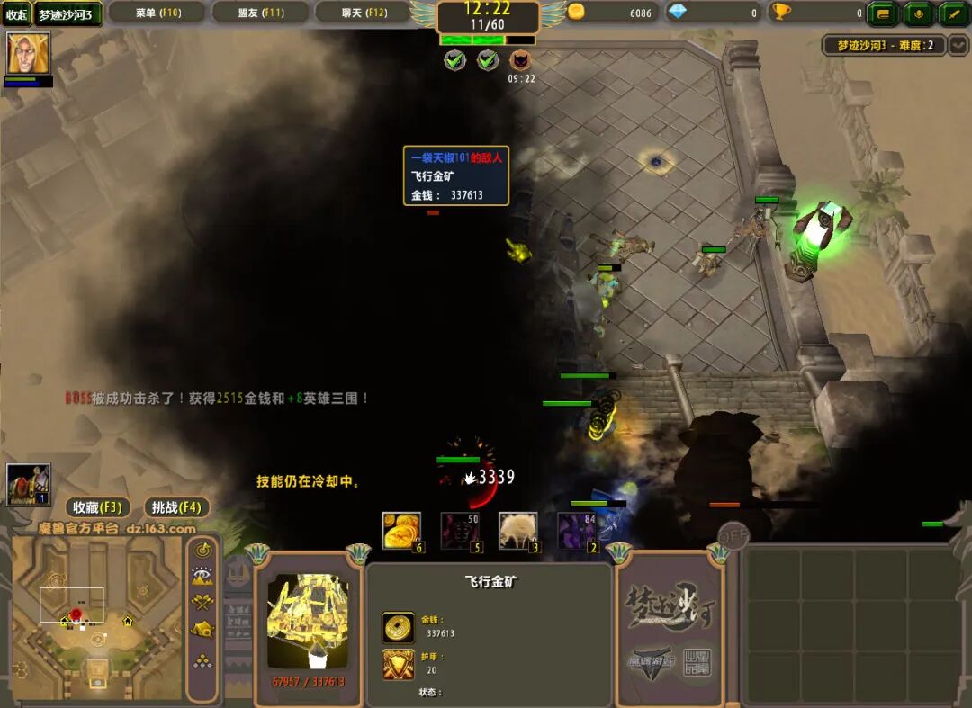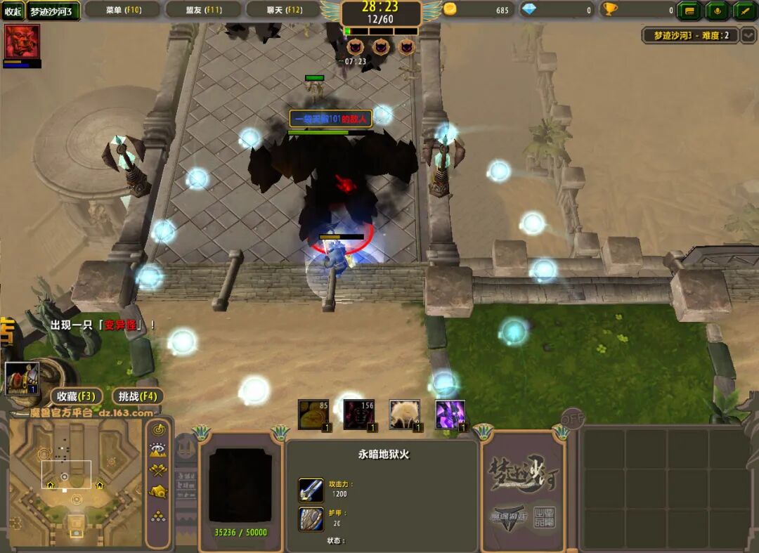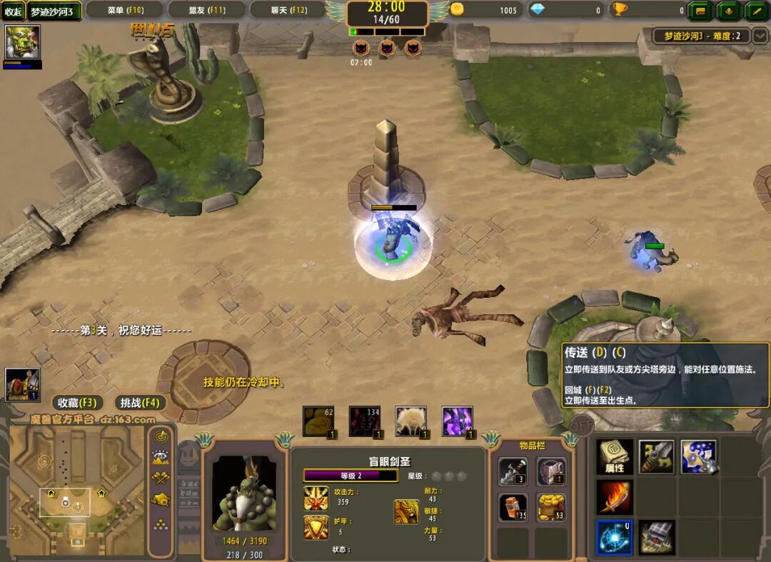 这个时候我们可以把我们的信使拉到右边点,然后用C技能传送到信使处以及F/F2快速回城功能在方尖塔和信使之间来回游走,操作得当的话可以不用死亡就击杀掉永暗地狱火。