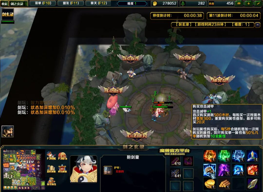 而“剑坛”则可以看成是每隔一段时间自动获得属性的系统玩法,当我们能刷木头的时候,优先存1000木在这里学习“攻击减甲”和“木材效率”各一次,这样每隔一段时间我们会获得木材效率或是攻击减甲的提升。