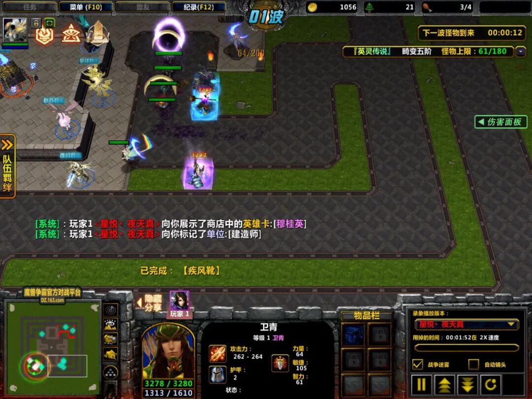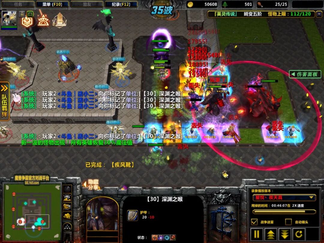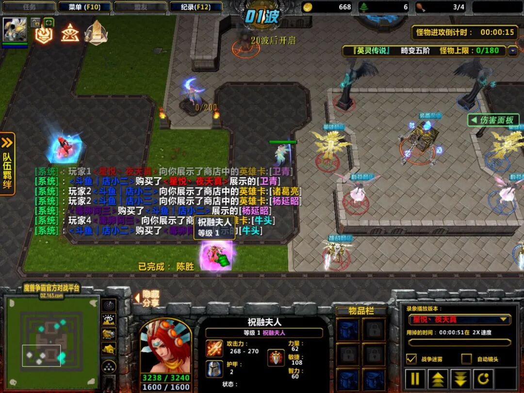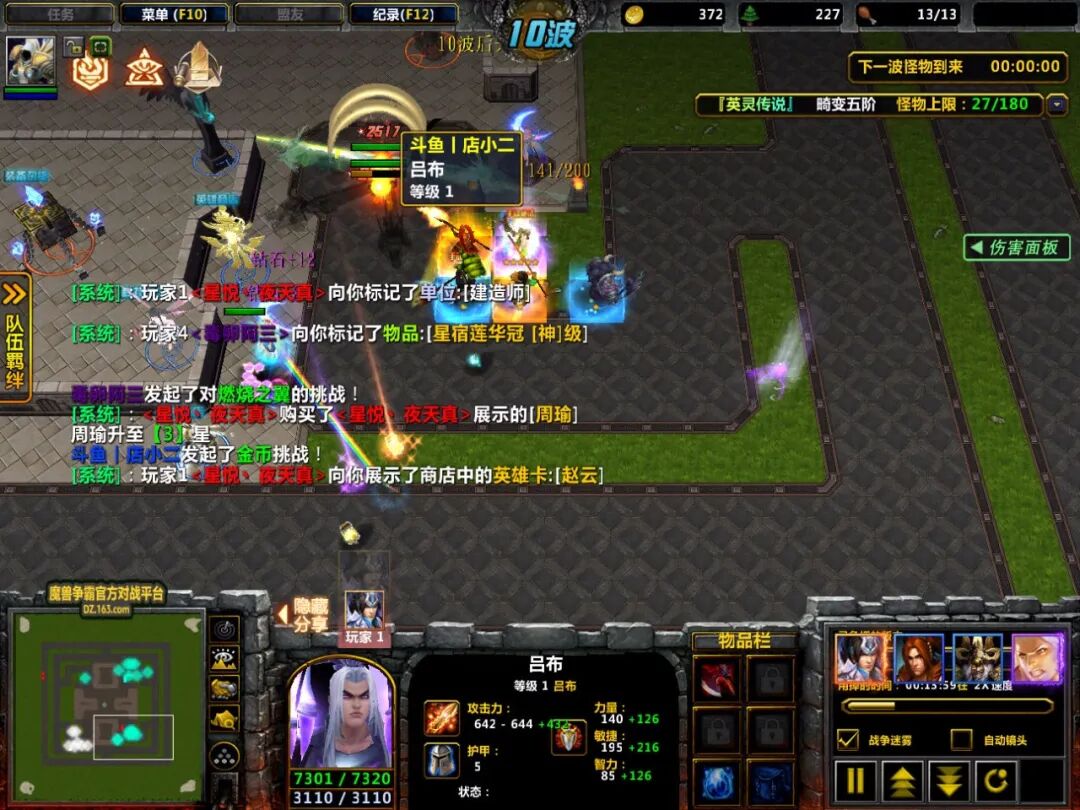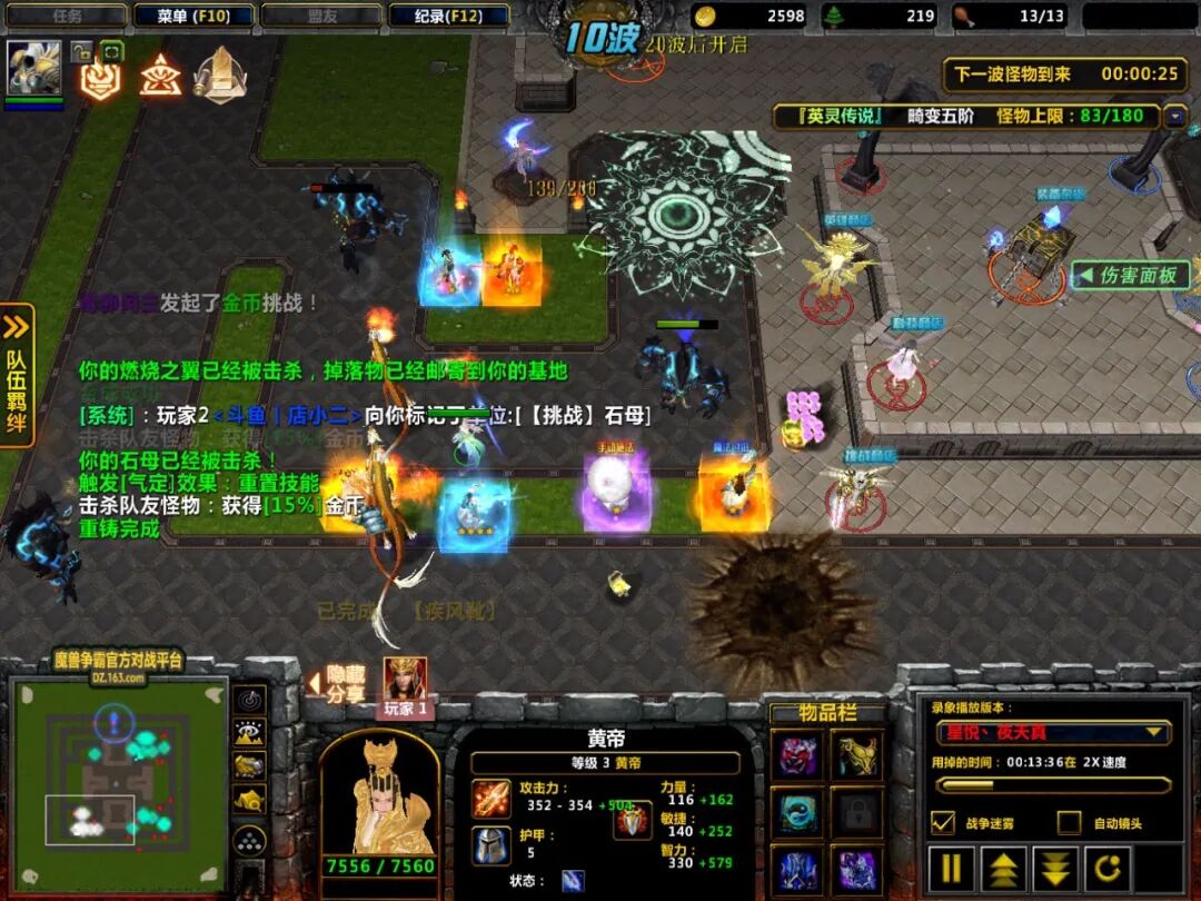 第十波的时候,两位玩家的核心英雄都抽到了,红色玩家走的是黄帝主C,诸葛亮、周瑜、庞统辅助控制的路线。