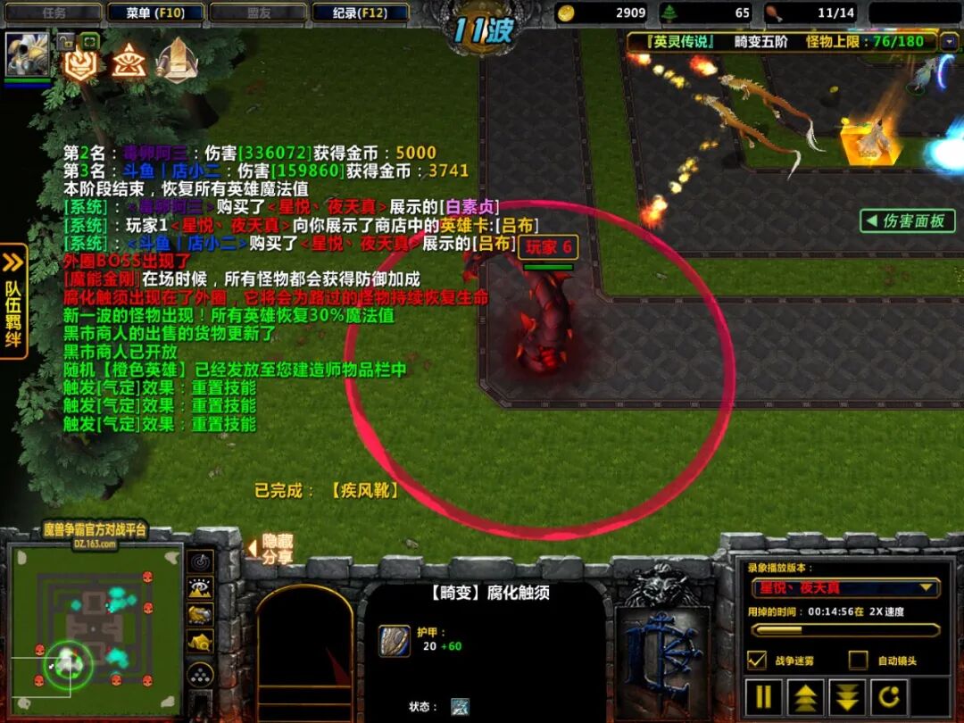第十一波的时候,外圈BOSS照常路过,而外圈的角落刷出了腐化触须。此触须怪可以快速的回复进入红色光圈的怪物血量,并且还自带潜伏技能。