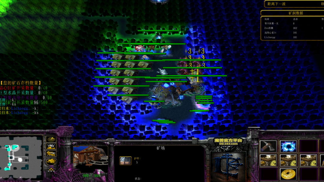 接下来我们有四分钟的发展时间,利用好这个时间,在空地上建造基础的设施。首先我们先把矿场造好,这是解锁其他建筑的基础。然后在空地最里面留出一块区域,用来建造金矿群和农场群,之所以早在最里面,是因为之后的进攻魔物,有自带群体伤害的法术,靠外建筑的话容易受损。