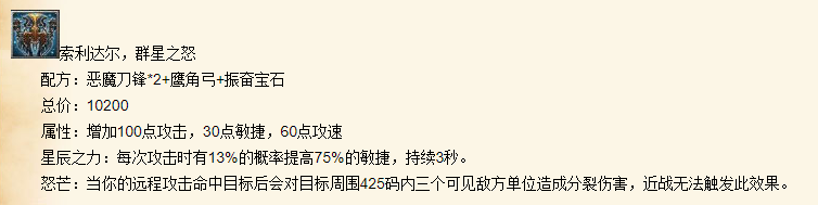 IMBA还是十分大胆的把魔兽世界中的知名武器都加入到了游戏中。例如风剑雷霆之怒,逐风者的祝福之剑,还有橙弓索利达尔,群星之怒。这些神器给玩家带来的提升都特别对得起自己橙色的品质(金色传说!)