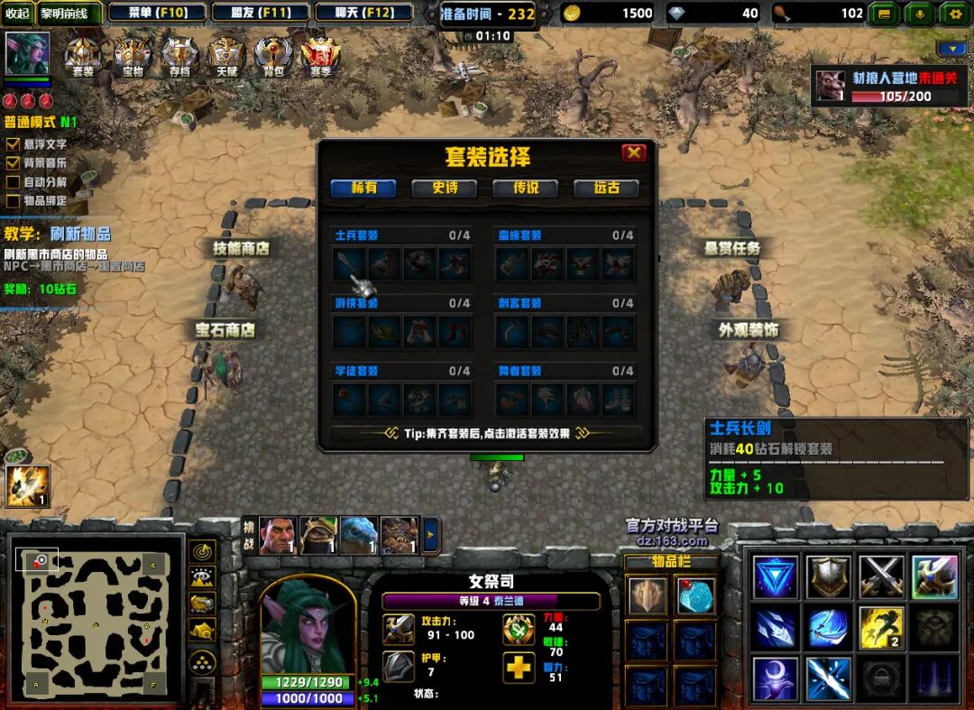 钻石的获取方法比较单一,打爆练功房中的宝箱有可能会获得套装、宝石等道具,如果这些道具对你的英雄不是非常合适,则可以通过“X”键进行分解,分解之后我们就能获得宝石了。按F3打开套装页面,可以看到不同级别的套装各有六套,每种属性各占两套。实际上我们只需要激活符合自身主属性的套装即可,这里就需要耗费大量的钻石。