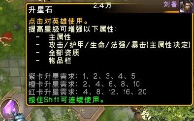 英雄的升星便对应于星级挑战,不同等级的boss可以给到玩家不同数量的升星石,而不同品质的英雄所需要的升星石数量也各不相同。