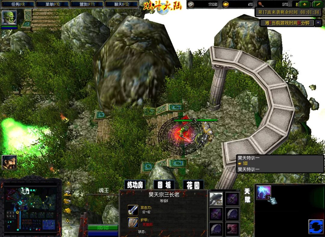合成了最终装备后我们就可以前往副本传送进入“昊天宗”,在昊天宗里有三个NPC,分别有特训1-4,分别挑战完4个特训可以给人物获得巨大的属性加成。