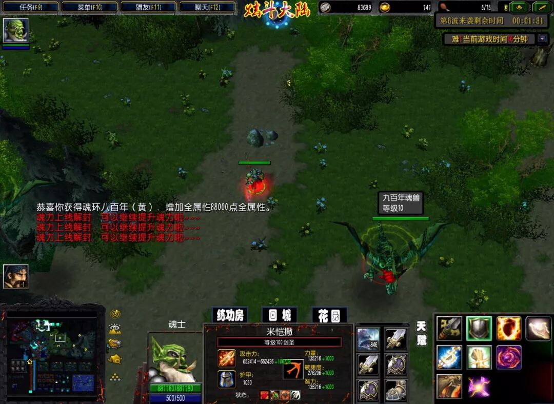 后续的流程都是提升装备,击杀魂兽,小鸡将装备提升至进阶LV4之后就前往挑战魂兽了,第二只魂兽选择的是一只“两千年魂兽”,第二只魂兽如果各位玩家是多人防守,有队友守家那么还是尽可能挑战高难度魂兽,后续都是一样的。