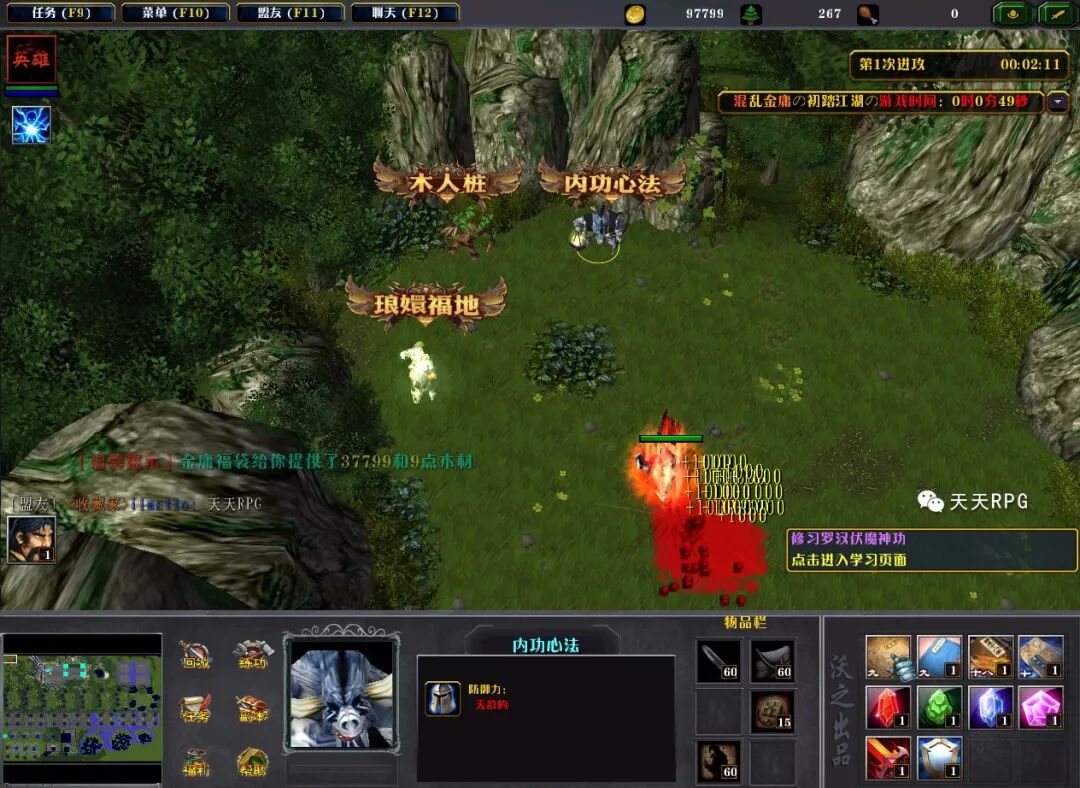 下面重点来了,各位小伙伴一定要仔细听讲哦,前期我们接触的内容可以总结分为四项,“内功、外功、套装、任务”。