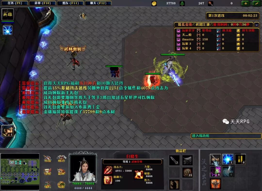 在练功房里我们先杀敌满个2000,将身上的初始装备以及练功神衣所需的杀敌数全部杀满,有助于等下流程开始的流畅性。