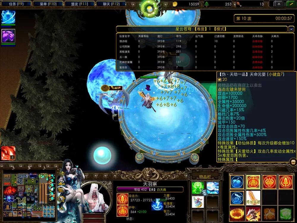 这时候我们刷属性是非常快的,中途可以穿插再打打心魔,会奖励伤害加成。属性刷到60W三围后我们就离开前往后续装备副本将风火轮、生死簿和水之本源合成。