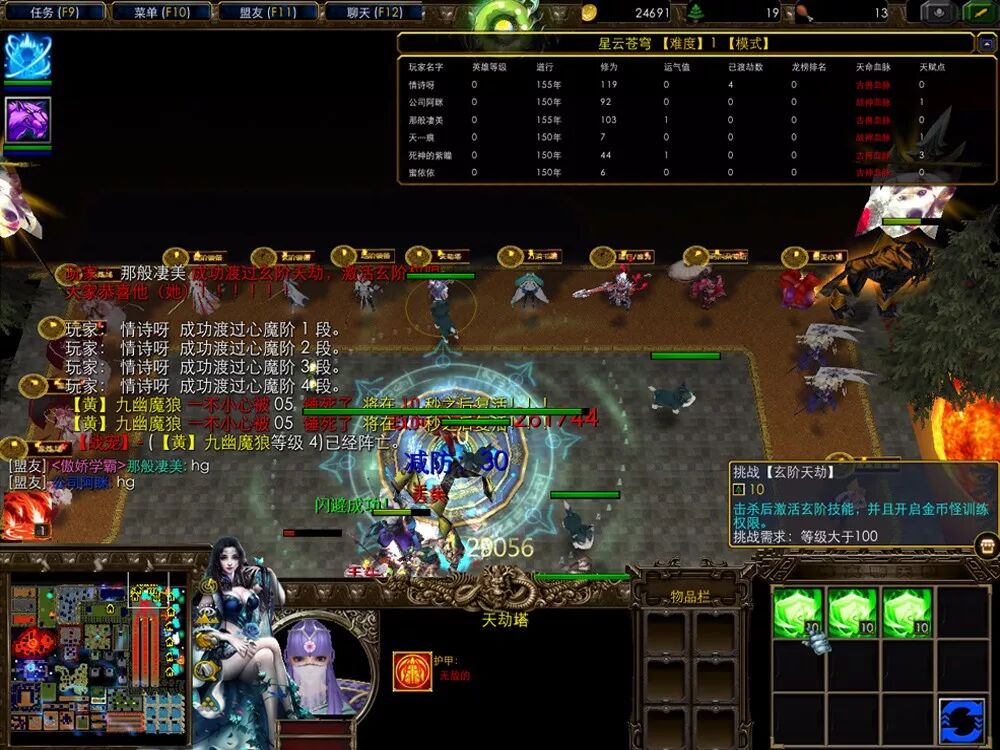 封仙葫芦出来以后我们就可以前往“天劫塔”挑战开启玄阶技能了,顺带开启的还有练功房的木头怪,我们刷够500木将练功房心魔挑战五次拿到翅膀。