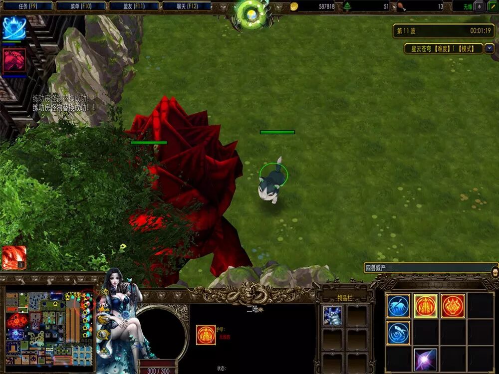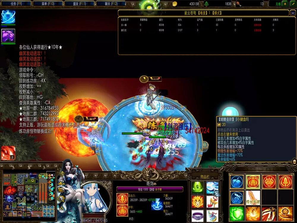 升级完后我们回到练功房,将最后的十次心魔打掉。翅膀到了圣阶我们直接开刷大属性怪